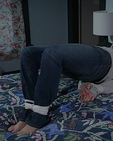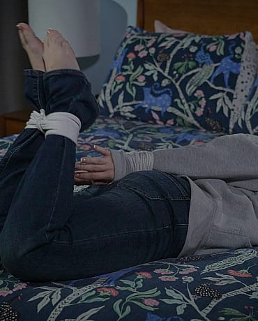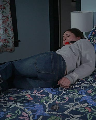 Zoe's just moved to this neighborhood but, quickly noticed the nosey neighbor Tina always poking around. When she stopped by with cookies, Zoe answered the door just to be nice. Before she knew it, she found herself bound and gagged! Tina had been plotting the whole time!