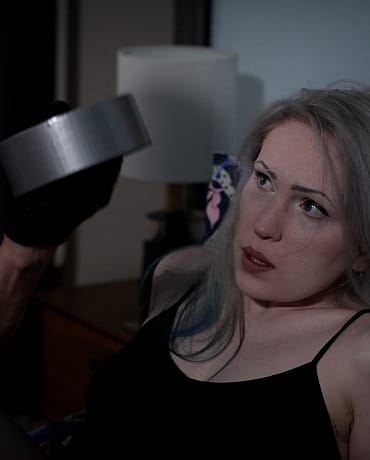 Thief Vonka is having some self bondage fun with zip ties in the house she is robbing when another cat burglar catches her off guard. The pantyhose clad cat burglar uses the tape Vonka had and some dirty panties to get her tightly bound and properly gagged so she can case the place but thinks of a better way to really cash in on her sexy find.