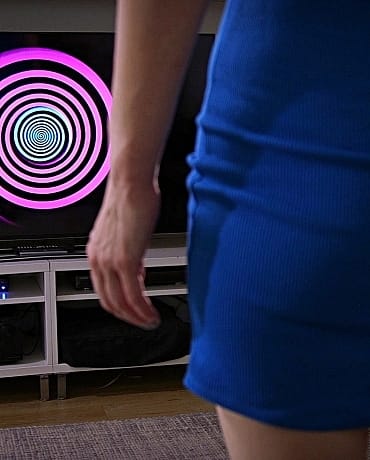 When Delirious goes on vacation with her friend Dixie she is super excited for the awesome vacation rental that Dixie found for them to stay in. Little does she know that Dixie has stayed there before and is still under the spell of the diabolical home owner and his magical spiral. Dixie sneaks off to a back room, leaving Delirious alone in the living room when the magic spiral suddenly appears on the tv drawing her eyes to it. She can't look away as it sucks her in and washes away her mind. Dixie reappears and tells her to take off her clothes. She mindlessly does as told with a blank half smile on her face. Dixie strips out of her own clothes and licks her friend's pussy until she has an orgasm. When she cums, the evil mastermind shows himself and finishes with Delirious's induction as he tells her to return the favor for her friend. Delirious licks Dixie's pussy until she cums and then they both find themselves once again sucked into the magic swirl until their master comes back and leads them away for the next part of his diabolical plan.