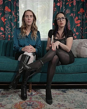 Researcher Tina and her assistant Cadence, in order to catalog and document your fetishes for tight, shiny clothing and nylon encased female bodies, put on a show for you, stripping down to their sheer pantyhose then putting on nylon gloves and finally re-appearing in full Zentai suits, all the while teasing you and encouraging you to touch them and to take out your cock and jerk off for them as they kiss, lick and grind on each other to gauge your arousal levels. Finally they grind their pussies together through the shiny nylon covering until they've made each other cum and decide to take matters into their own hands by jerking you off until you cum all over their nylon gloves.