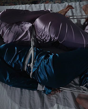 Long time lovers Vonka and Syenite have a very special relationship with their friend Tina. They love to be dominated and bound as a couple and Tina loves to do it for them! They set up play dates and make a whole night filled with rope, tape, hitachis and fat dildos. Tina loves to take her time and watch them struggle. This evening they explored the smooth feeling of satin pajamas under the bondage and it was so erotic. The silk fabric made everything so much more sensual!