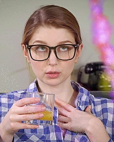 Dixie was excited to find such a hot new roommate for her off campus apartment but it turns out that Bunny is just a boring nerd who spends all of her time with her nose buried in books and never wants to go out and do slutty girlfriend things. But Dixie finds a solution to her problem when she convinces Bunny that she's concerned for her nutrition with all the time she spends studying and brings her a glass of juice. What Bunny doesn't know is that it is magical Dumb Bitch juice that will regress her intellect and turn her into the slutty bimbo roommate that Dixie has always wanted.