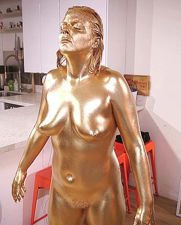 As any good actress would, Kendra decided to reference some gold statue videos before the shoot she has in the morning. She's surprised at how much the concept turns her on and starts to masturbate to the thought of being a frozen metal piece of art! As her tired eyes lower Kendra's fantasy comes to life! She's a glittering gold statue and her body is made for pleasure! As she touches her hard smooth body she realizes with shock and terror that she's starting to freeze in place! With an orgasmic gasp and her heart racing Kendra wakes up to discover her hands have turned to gold!