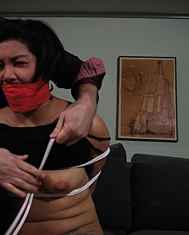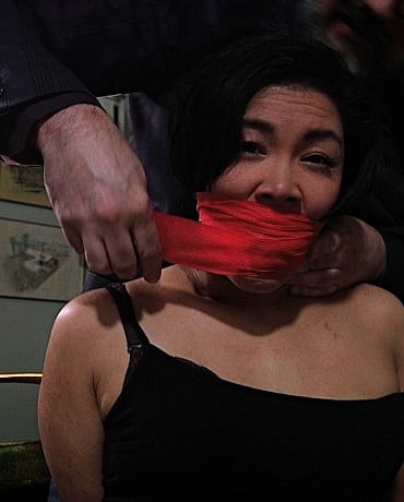 Kim is a college journalism major who writes for the school paper. She’s heard rumors about a professor who gives female students passing grades in exchange for sex and has arranged to have a meeting with him. Once she gets him to confess his scheme, she pulls out a recorder and threatens to reveal him. The Professor will have none of that and after a short scuffle, Kim finds herself hogtied and gagged with her own panties.
