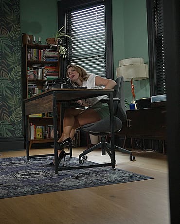 Alba is working late when an intruder grabs her and ties her up. Tina, a secretary from another office finds Alba but her attempt to get her free is futile and both ladies find themselves bound with a hitachi and gagged with each other's panties.