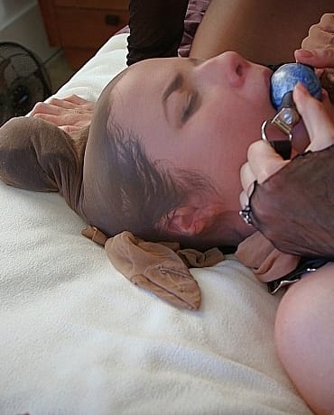 Innocent Veruca thinks she's going to make some new friends from her new job when co-workers Dixie and Kimberly invite her over to their place for a 'girl's night' but it turns out they have a different idea of fun when she finds herself encased in pantyhose and getting strap-on fucked and asshole licked by the two also encased and crazed lesbians. It turns into a wet, messy, sloppy, spitty, gaggy night she'll never forget.