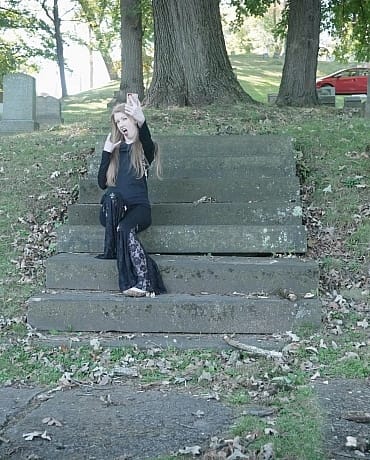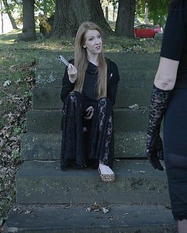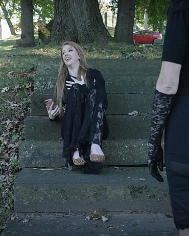 Sonia is enjoying an autumn walk in the cemetery. She takes a break by an old mausoleum to snap some selfies when she's started by a mysterious woman who seems to appear out of nowhere. The next thing Sonia knows she's bound in the vault and the mysterious woman is having her way with her.